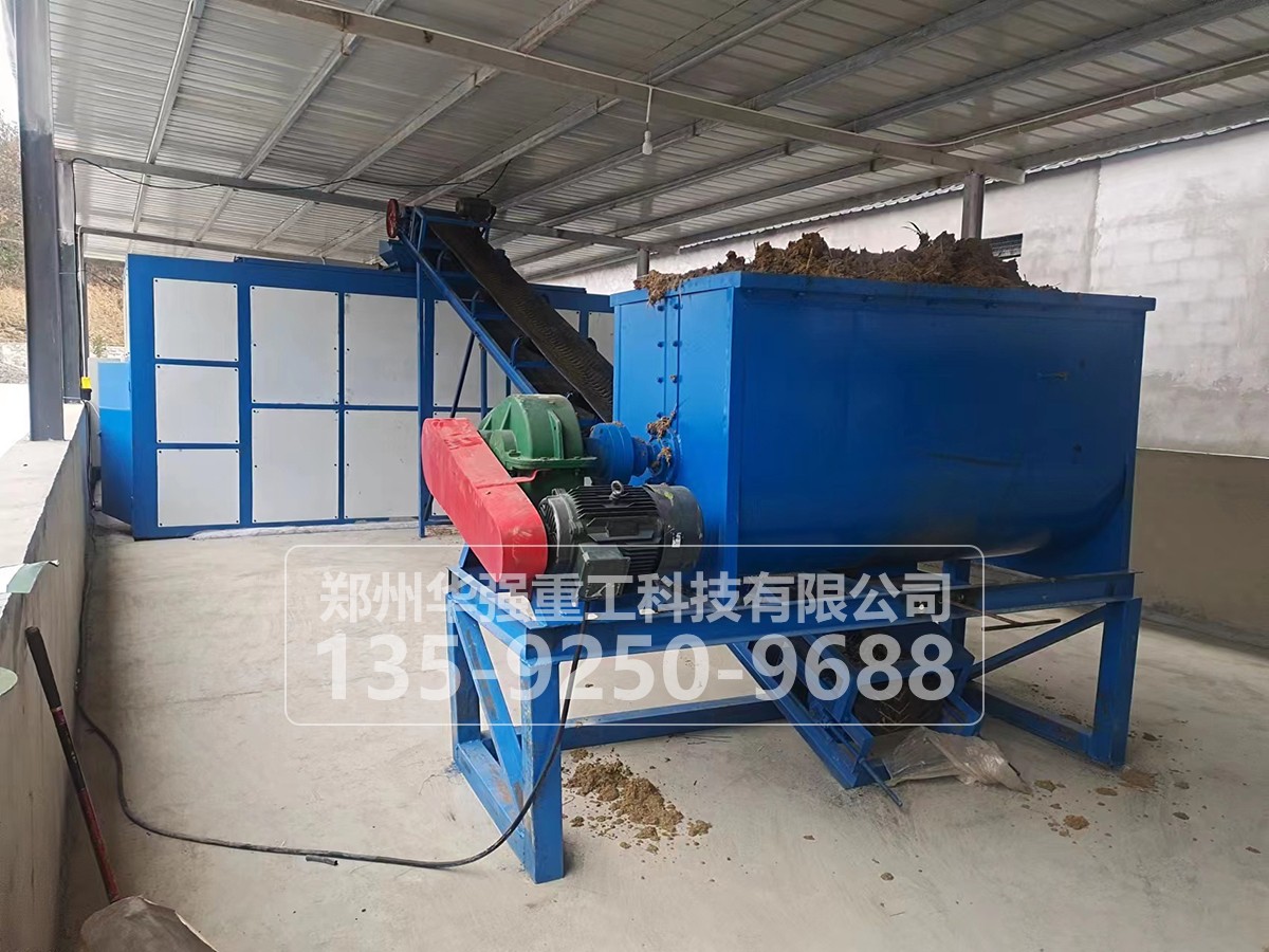 設備工作原理是:將廢棄物(畜禽糞便、廚余垃圾、生活污泥等)生物質(秸稈及鋸末等)以及回流物料按照一定比例混合均勻,使含水率達到設計要求60-65%后進入立體好氧系統(tǒng),通過調節(jié)原料的水分、氧氣含量和恩度變化,使物料進行充分的好氧發(fā)酵分解,分解過程中釋放的熱量能夠使物料自身溫度增高,溫度**能夠達到95℃,發(fā)酵物料中的水分隨著溫度的上升被蒸發(fā),部分有機物被分解,從而使堆體體積減小,到達廢棄物的減量化處理。