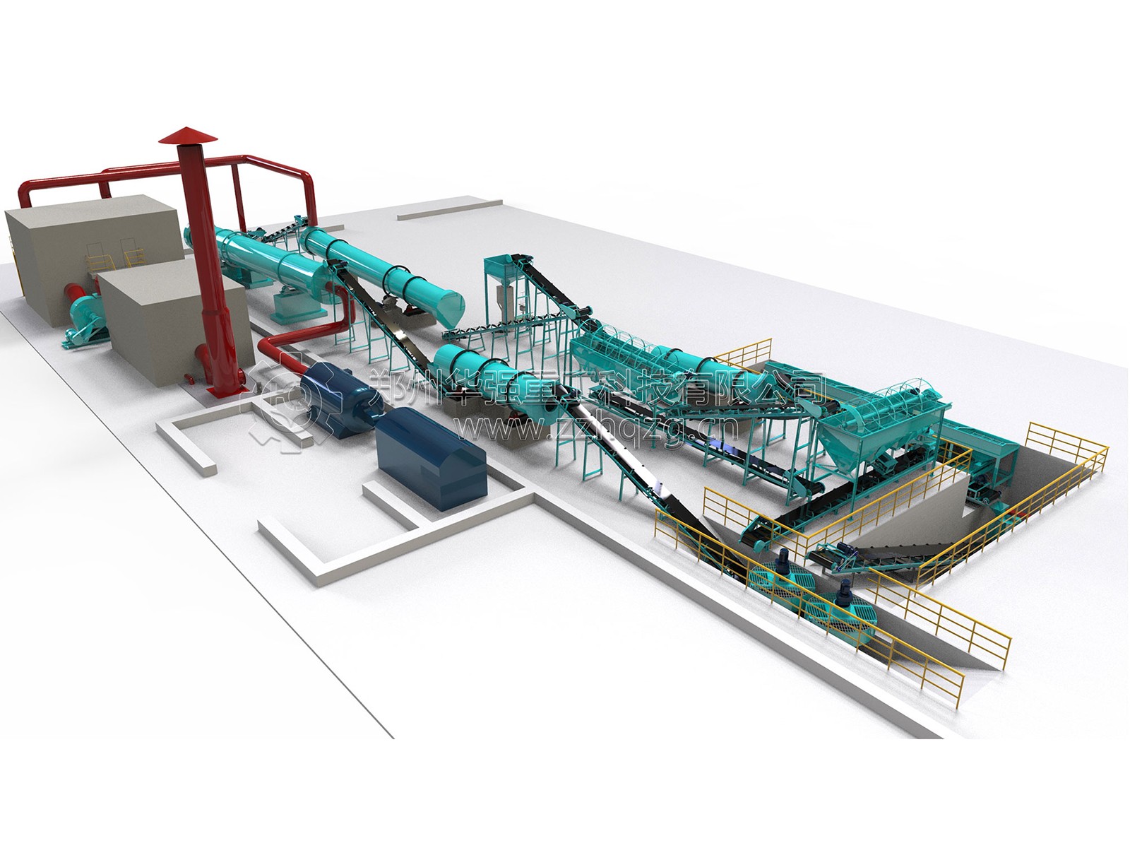 工藝流程:配料系統(tǒng)——滾筒篩分機(jī)——立式攪拌機(jī)——轉(zhuǎn)鼓造粒機(jī)——烘干機(jī)——冷卻機(jī)——自動(dòng)包裝機(jī)。